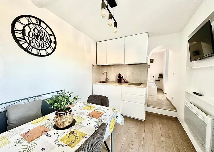이 숙소는 장 콕토 미술관에서 5분 거리에 있으며 쁠라쥬 데 사블레뜨에서 450m 떨어져 있습니다. 시내 중심가는 숙소에서 1km 거리에 있으며 몬테카를로 은 15km 거리에 있습니다. Restaurant Alkena 레스토랑은 프랑스 요리를 제공하며 숙소에서 도보로 5분 거리에 있습니다.